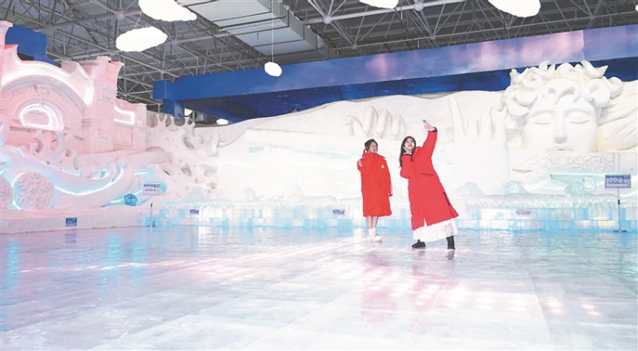 馆内还设有彩色溜冰区和互动戏雪区,现场雪花纷纷飘落,犹如重回隆冬时节。值得一提的是,馆内的游览路线上分布多组栩栩如生、各具特色的熊猫冰雕,串联场馆各个分区,游客可以在这纯洁无瑕的世界里,与国宝共赴一场冰雪童话之旅,收获更加独特的游览体验。
