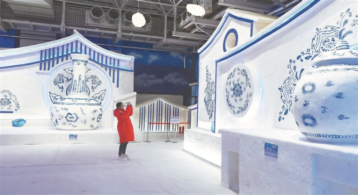 太阳岛冰雪艺术馆在5000平方米的场馆内,重塑了《青花瓷》《悠悠牧羊曲》《八骏踏雪》《盛满春雪-迎亚冬》等太阳岛雪博会近三十年来的知名雪雕作品;同时雕刻北京冬奥会吉祥物冰墩墩、雪容融;重现1963年哈尔滨市第一届冰灯游园会的经典雪雕作品《万象更新》,匠心传承雪雕文脉,让游客在盛夏时节也能感受冰雪艺术的永恒之美,体验“反季节”的冰雪浪漫。